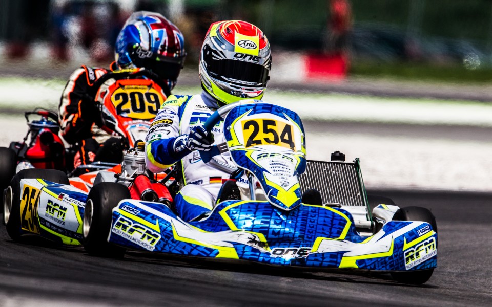 With two high-class competitions at the Adria International Raceway in Italy, the young kart driver Niklas Krütten had a full program on his agenda. Changing weather conditions made the second round of the CIK-FIA European Championship into a true rollercoaster ride with the early retirement for the young driver from Trier in the Pre-Final. Only a week after, the 13-year-old took part in the WSK Night Edition at the same track as a preparation for the CIK-FIA World Championship taking place in Bahrain in November, and finishing the Final with a great Top-10 result.