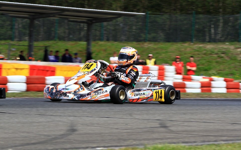 After he lastly established himself among the top 30 drivers in the world at the WSK Super Masters Series, now things got serious for the newcomer at the German Junior Kart Championship as well. On the first weekend of May, the kick-off event of the German Kart Championship took place on the 1.222m long track of the Prokart Raceland Wackersdorf. Under the patronage of four-time Formula 1 champion Sebastian Vettel, the twelve-year-old driver of the English team Forza Racing wants to prove himself in another challenging racing series.